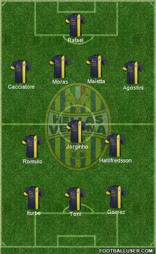 QUI VERONA – Mister Mandorlini deve fare a meno di Rubin e contro il Napoli si affida al classico 4-3-3 con gli interpreti che finora hanno stupito in campionato. In cabina di regia a centrocampo occhio a Jorginho, accostato con sempre maggior frequenza al Napoli; in avanti Iturbe e Gomez a supporto di bomber Luca Toni