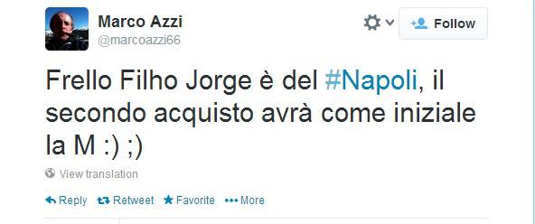 “Frello Filho Jorge è del #Napoli, il secondo acquisto avrà come iniziale la M :) ;)”