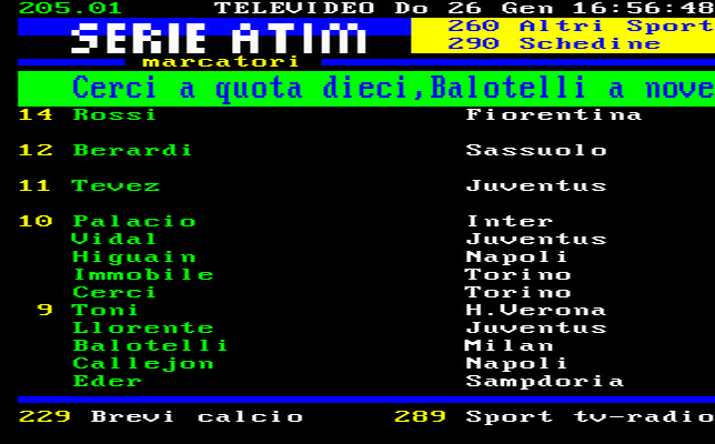 Berardi continua a stupire. Il giovane talento del Sassuolo, nonostante la sconfitta di oggi a Livorno, sale sempre di più nella classifica marcatori segnando il gol della bandiera del Sassuolo. Cerci e Balotelli salgolo rispettivamente a quota 10 e 9 dopo le reti di quest’oggi. Le prime tre posizioni della classifica marcatori sono: Rossi (14 gol), Berardi (12 gol) e Tevez (11 gol).