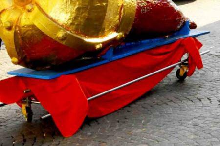 Gli artisti Alessandro Barone e Giuseppe La Capruccia, in occasione della semifinale di ritorno di Coppa Italia tra Napoli e Roma, metteranno in bella mostra, dalle ore 17.00 alle 20.00, un Corno rosso gigante. L’enorme portafortuna è composto da cartapesta e gesso e sarà rimosso con largo anticipo prima dell’inizio della sfida, così da evitare eventuali ingombri al flusso dei tifosi. L’iniziativa non ha alcuno scopo di lucro ma unicamente folkroristico e soprattutto scaramantico.
