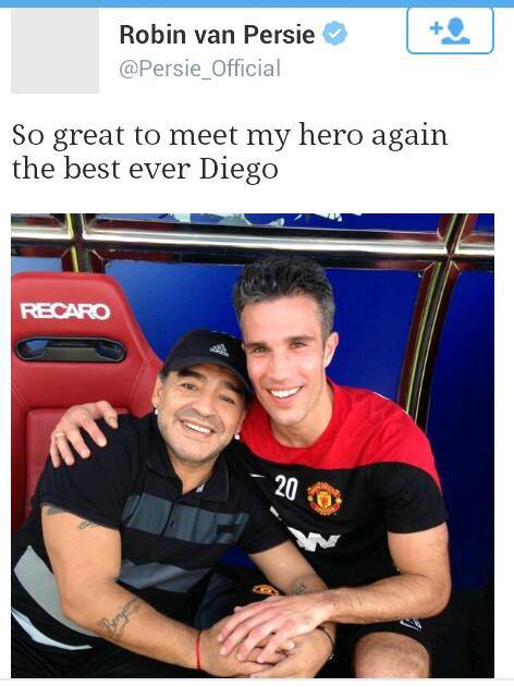 Robin Van Persie ha postato su Twitter la foto scattata con Diego Armando Maradona.