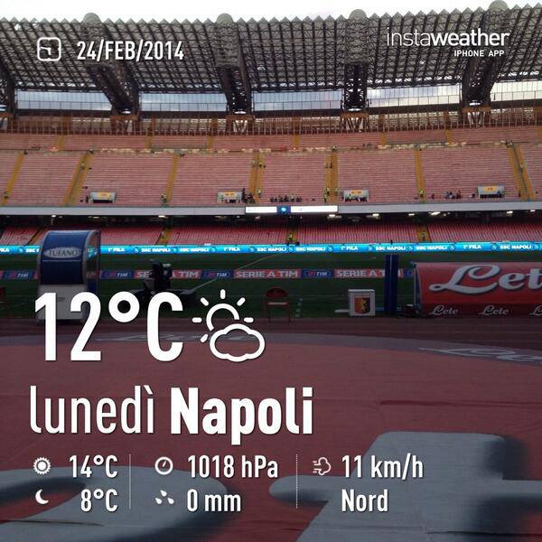 Tutto pronto al San Paolo, in attesa delle squadre. Il tweet della società 24/02/2014 di Gennaro Arpaia “-3h a Napoli-Genoa Tra poco aprono i cancelli del San Paolo per una partita sempre speciale. Forza Napoli Sempre”. Questo il messaggio della società attraverso Twitter ai suoi tifosi, in attesa di Napoli-Genoa. G.A.
