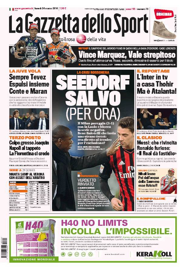 RASSEGNA STAMPA – Le prime pagine dei giornali 24/03/201424/03/2014 di vincenzomatino HAI TWITTER? AMI IL NAPOLI? CLICCA QUI PER SEGUIRE IL TUO NAPOLI SU TWITTER