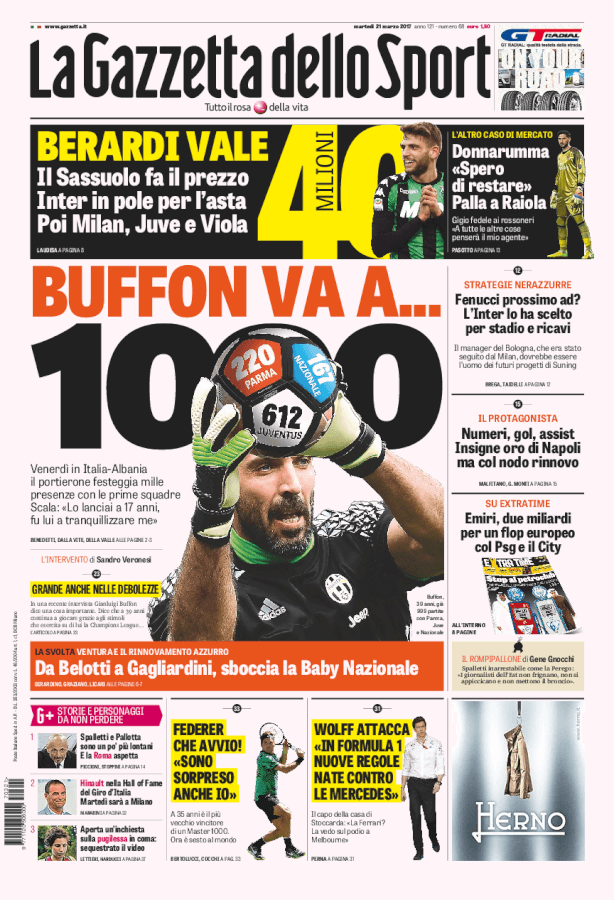 Rassegna stampa sportiva di martedì 21 marzo 2017 21/03/2017 di Salvatore Lavino Rassegna stampa sportiva di martedì 21 marzo 2017