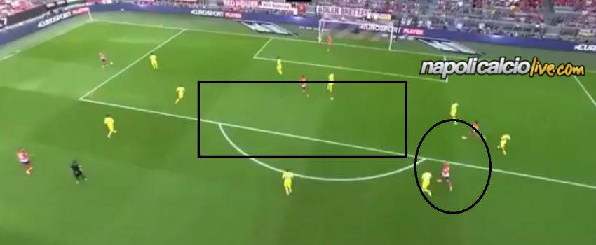 Il Napoli perde la prima partita dell’Audi Cup. L’Atletico Madrid rimonta lo svantaggio iniziale grazie alle reti di Fernando Torres e Luciano Vietto dopo il gol ad inizio ripresa dello spagnolo Callejon. Gli azzurri amministrano il gioco per una buona parte di gara calando soltanto alla fine della partita. Superare la prima linea pressing degli avversari è una delle qualità della squadra di Maurizio Sarri che riesce ad essere spettacolare nel fraseggio tra i vari reparti peccando in concretezza e cattiveria. Nel primo tempo, dopo un possesso palla prolungato da parte degli azzurri, l’occasione migliore della partita arriva, però, sulla testa di Griezmann con Pepe Reina che smanaccia alla grande la girata del talento francese. Analizzando la situazione nello specifico si può vedere come il transalpino di Simeone parta dal centro-destra per poi andare ad impattare indisturbato la palla di testa al centro dell’area. Ma chi sbaglia nell’occasione specifica?
