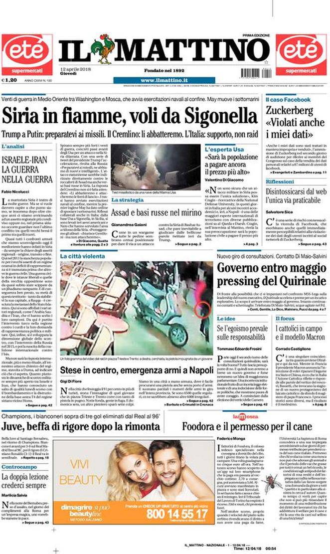 L’edizione odierna de “Il Mattino” si sofferma più sulla rimonta e sull’impresa quasi compiuta da parte della Juventus. I bianconeri, però, sono stati fermati dal calcio di rigore concesso al minuto 93 dopo il contatto avvenuto tra Benatia e Vazquez. Gli uomini di Allegri hanno dimostrato di crederci fino alla fine con una prestazione maiuscola mettendo in serie difficoltà il Real al Bernabeu.