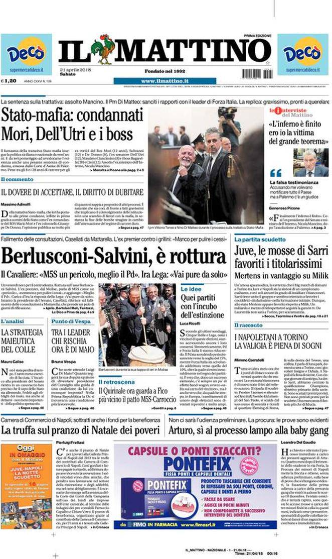 Rassegna Stampa, la prima pagina de ‘Il Mattino’