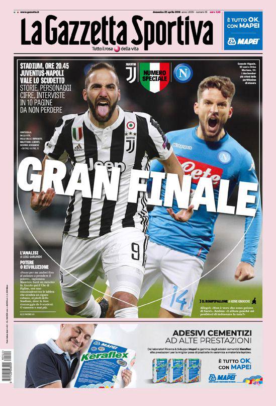 Rassegna stampa sportiva di domenica 22 aprile 2018: è il giorno di Juve-Napoli.