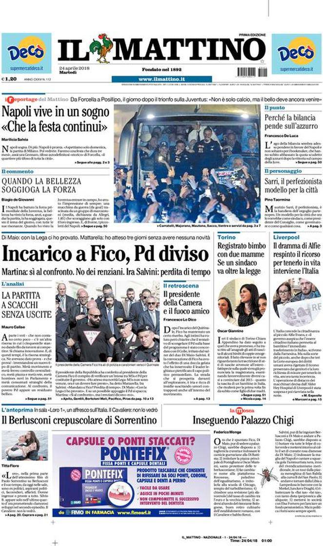 Rassegna stampa sportiva di oggi, martedì 24 aprile 2018.