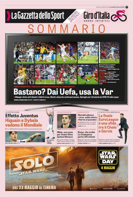 Rassegna stampa sportiva di venerdì 4 maggio 2018. Le prime pagine di oggi.