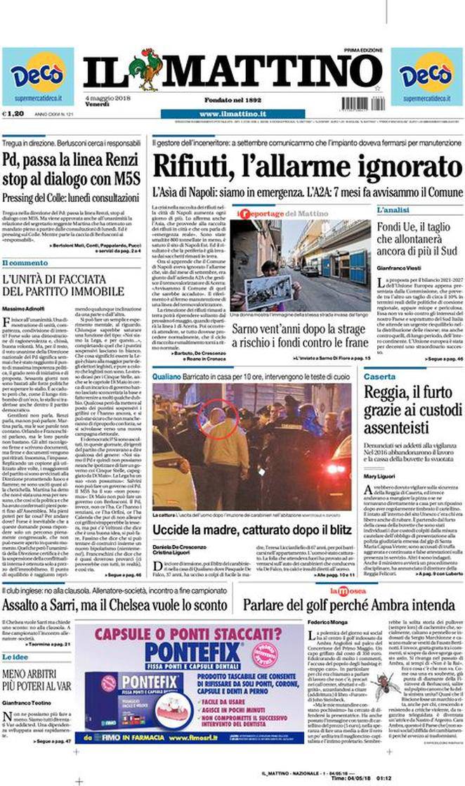 IL MATTINO – Infine, l’edizione odierna de “Il Mattino” scrive dell’accostamento di Maurizio Sarri al Chelsea, anche se il club inglese vuole uno sconto sulla clausola da esercitare per il tecnico toscano. A fine stagione ci potrebbe essere così un incontro tra De Laurentiis e lo stesso Sarri.