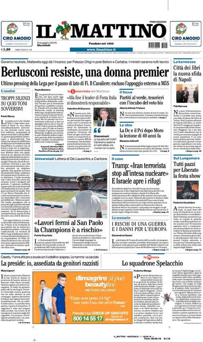 IL MATTINO – Varie notizie di politica, cronaca e cultura sul giornale napoletano. Si parla del Napoli solo collateralmente, con i lavori allo stadio ‘San Paolo’ che metterebbero a rischio la disponibilità dell’impianto per la Champions League.