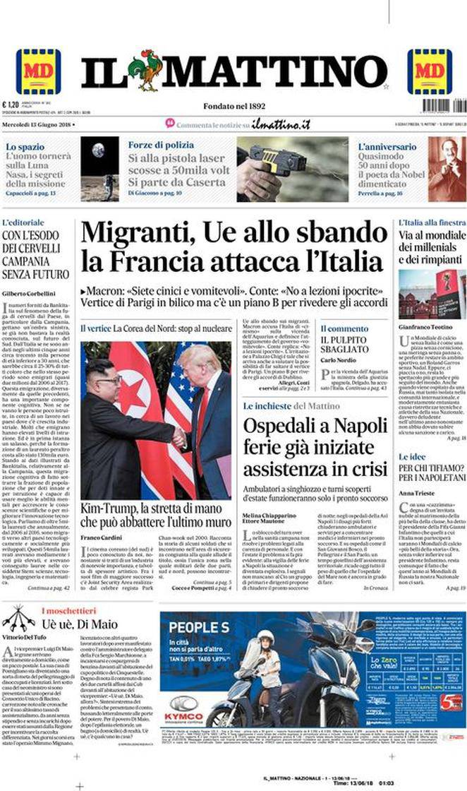 IL MATTINO – Il giornale napoletano, nella sua edizione odierna, presenta come al solito aggiornamenti di politica e cronaca italiana ed anche estera. Per quanto riguarda lo sport, si parla dei Mondiali al via domani.