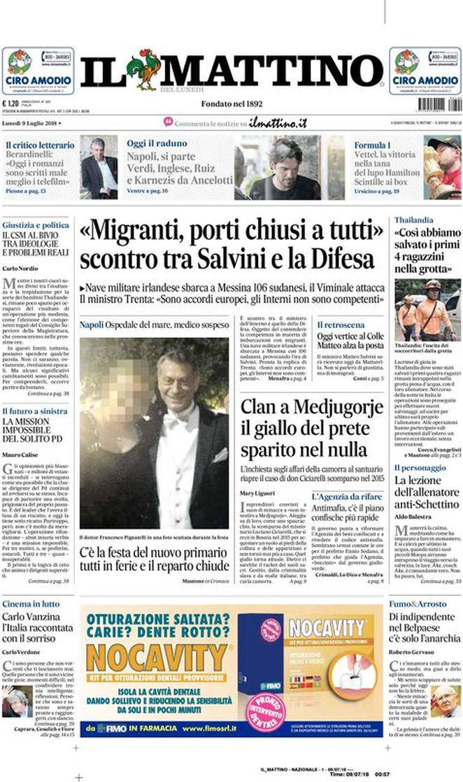IL MATTINO – Il giornale di Napoli presenta come al solito diversi aggiornamenti di politica e cronaca, sia italiani che esteri. Per quanto riguarda lo sport, si parla di Formula 1 con il successo della Ferrari in Inghilterra e soprattutto con il raduno del Napoli che scatta oggi. Poi si partirà nelle prossime ore per il ritiro estivo di Dimaro.