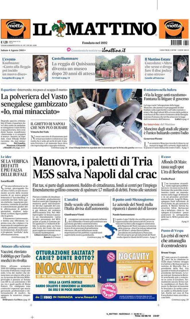 Rassegna stampa sportiva di sabato 4 agosto 2018. Le prime pagine di oggi.