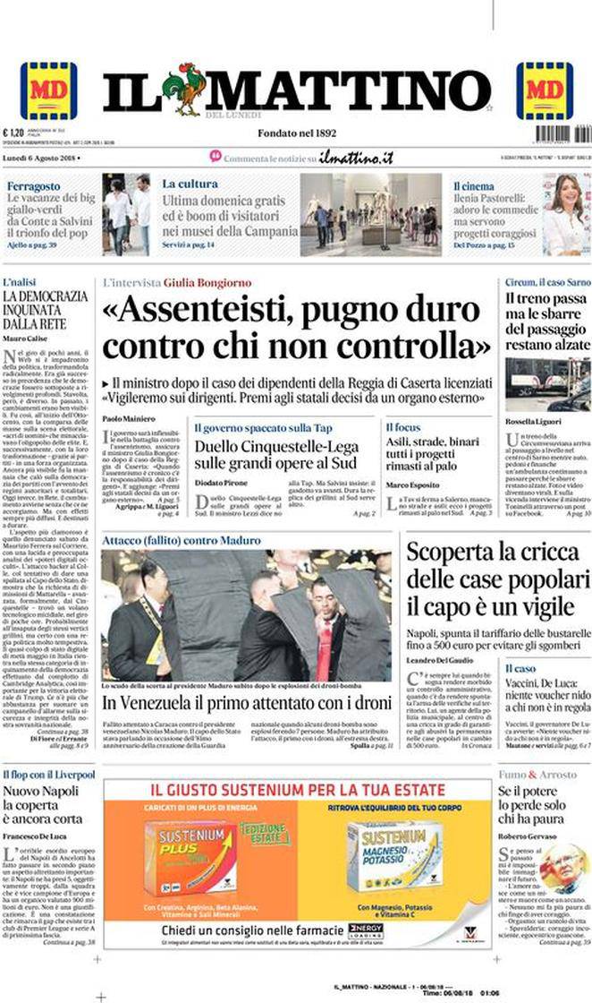 IL MATTINO – Per il quotidiano di Napoli si parla principalmente di news riguardo a politica e cronaca italiane ed estere. Per quanto riguarda la squadra azzurra, si continuano ad esaminare le criticità emerse nell’amichevole contro il Liverpool.