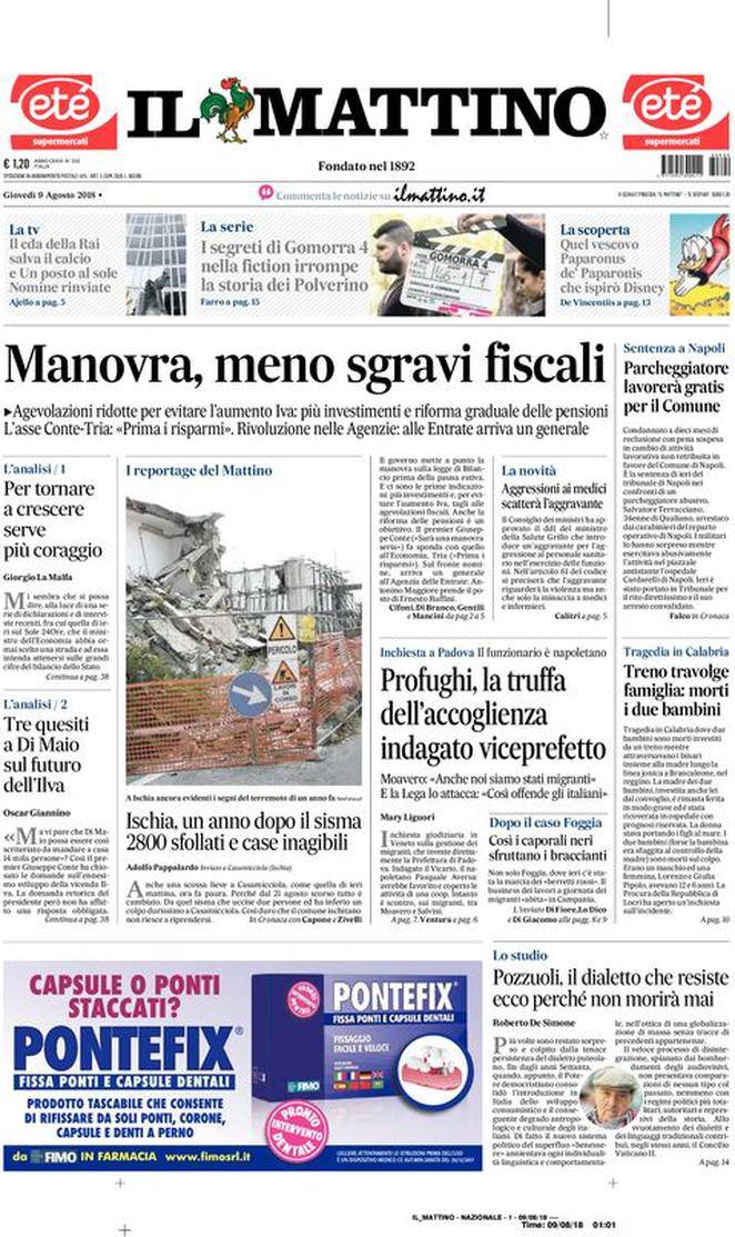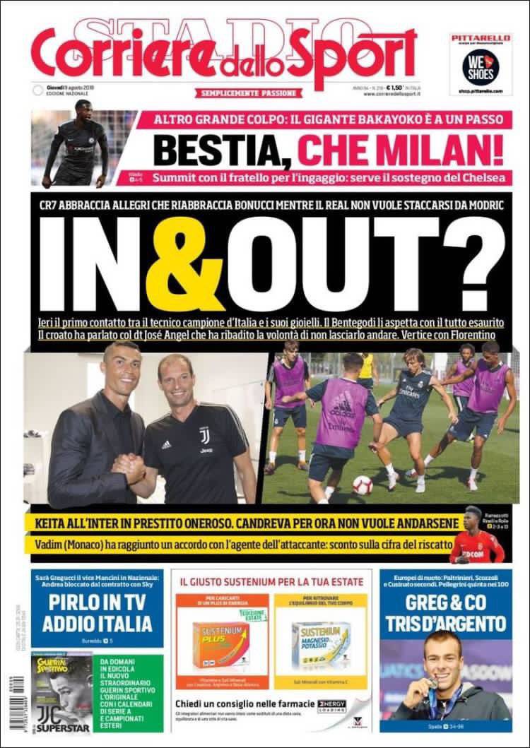 Rassegna stampa sportiva di giovedì 9 agosto 2018. Le prime pagine di oggi.