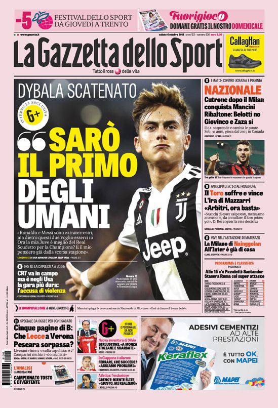 Rassegna stampa sportiva di sabato 6 ottobre 2018. Le prime pagine 06/10/201806/10/2018 di Salvatore Lavino Rassegna stampa sportiva di sabato 6 ottobre 2018. Le prime pagine di oggi.
