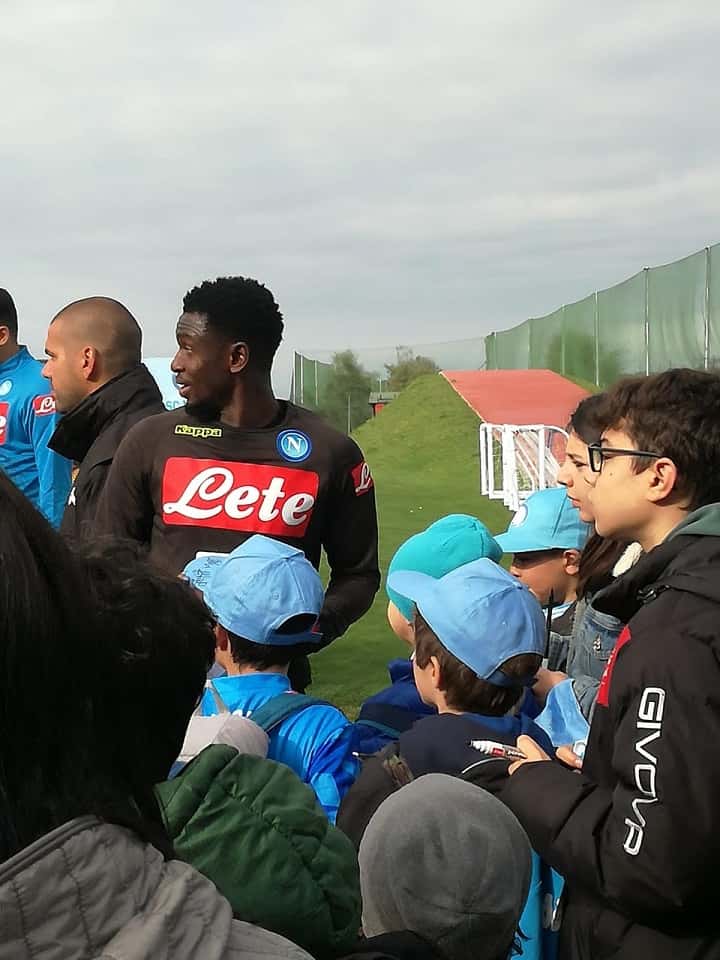 I calciatori del Napoli incontrano un gruppo di piccoli tifosi affetti da Diabete di tipo 1 durante una sessione di allenamento a Castel Volturno.