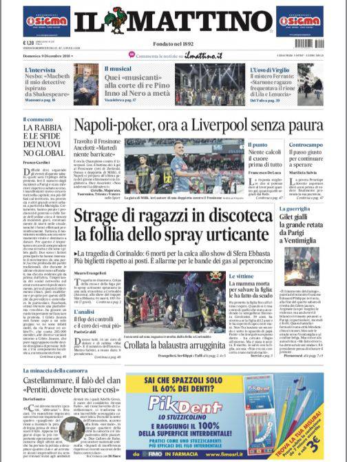 Rassegna stampa del 9 dicembre: il Napoli liquida il Frosinone e si prepara al Liverpool.