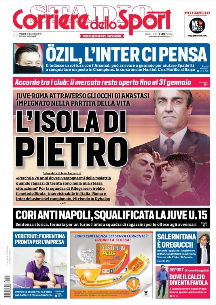 Rassegna stampa del 21 dicembre: il Napoli proverà ad accorciare sulla Juventus, impegnata domani sera nel big-match contro la Roma.