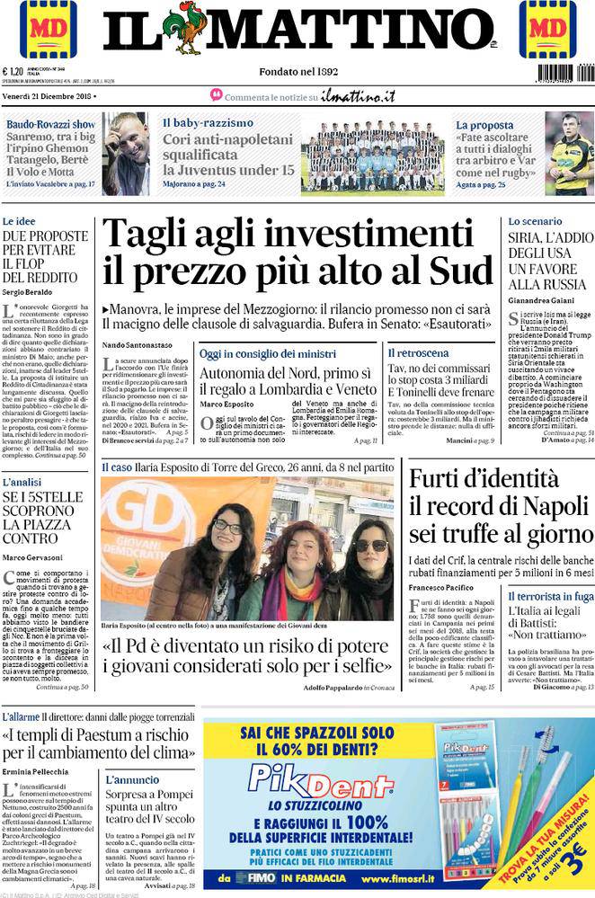 Rassegna stampa 21 dicembre 2018, i principali titoli