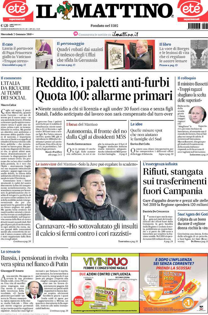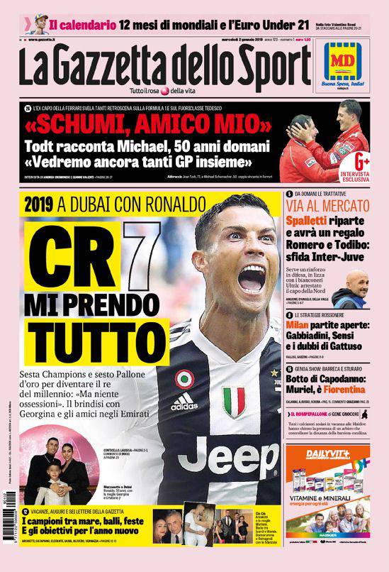 Rassegna stampa sportiva di mercoledì 2 gennaio 2019. Il calciomercato Napoli inizia a regalare i primi sogni azzurri.