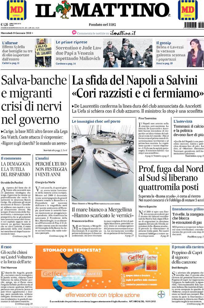 Il Mattino: “Napoli contro Salvini sul razzismo”
