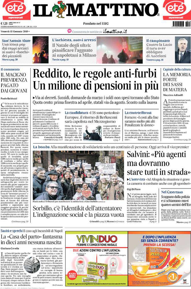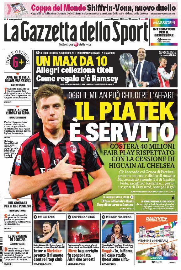Rassegna stampa sportiva di venerdì 18 gennaio 2019: oggi il ricorso contro la squalifica di Koulibaly, le possibili scelte di Ancelotti per Napoli-Lazio.