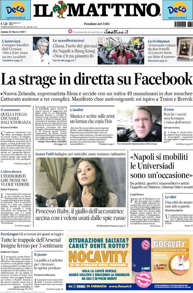 IL MATTINO – Il quotidiano napoletano presenta come al solito aggiornamenti e notizie di cronaca e di politica sia italiana che estera. Per quanto riguarda lo sport, ampio risalto ad Arsenal-Napoli. Insigne starà fermo per 3 settimane, Ancelotti deve fare qualcosa per rimediare a quanto di brutto visto con Sassuolo e Salisburgo. E domani si gioca Napoli-Udinese.