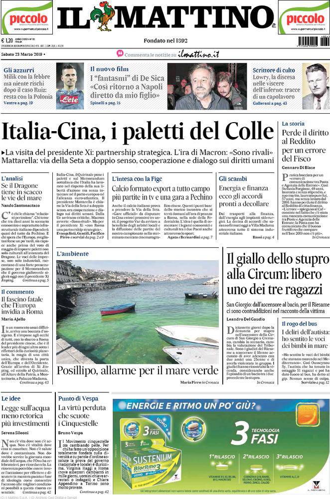 IL MATTINO – Sul quotidiano napoletano c’è spazio come sempre per diverse notizie sia di cronaca che di politica italiana ed estere. Riguardo al calcio, Arkadiusz Milik contrae un attacco febbrile nel ritiro con la Polonia. Ma il bomber del Napoli rimarrà aggregato con la sua nazionale per ora. La Lega Serie A intanto studia la possibilità di far disputare una partita di campionato a Pechino, in Cina.