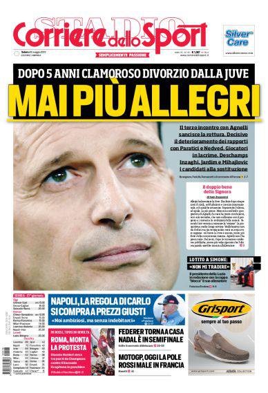 Gazzetta dello Sport ed Il Mattino: “Chi al posto di Allegri?”