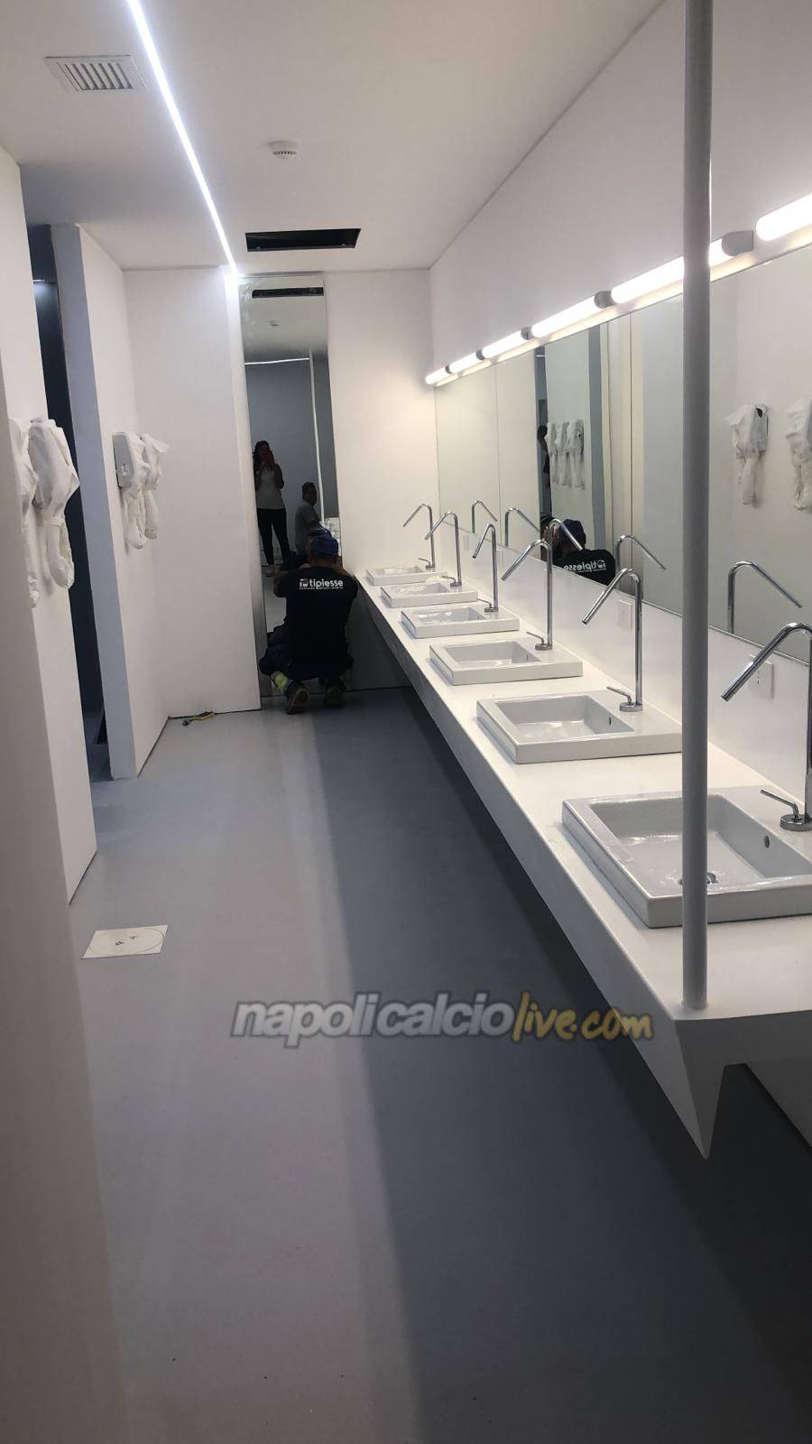 Una situazione davvero incresciosa, quella relativa agli spogliatoi dello stadio San Paolo. Il comunicato feroce firmato da Carlo Ancelotti ha fatto luce su quello che sembrava uno scandalo vero e proprio, ma in realtà le testimonianze che stanno venendo fuori da fonti del Comune raccontano una storia completamente diversa. Abbiamo chiesto lumi a Nino Simeone, consigliere e Presidente della commissione Mobilità e Infrastrutture del Comune di Napoli, che infatti ci ha descritto uno stato dei luoghi assolutamente differente, documentandolo con foto e video: “Da ieri, una volta appreso lo sfogo di Ancelotti, sto cercando di venire a capo di tutta la situazione – spiega Simeone a Napolicalciolive.com – Stamattina sono tornato sul posto e ho comprovato l’evoluzione dei lavori, che stanno andando avanti spediti. Lo stato dei lavori allo stadio potete comprovarlo da soli dalle foto e dai video che vi ho fornito. Degli spogliatoi “incriminati” sono riuscito a fare soltanto qualche foto di sfuggita perché all’interno ci sono ancora gli operai che stanno lavorando alacremente. Ma parliamo di rifiniture, di dettagli che possono essere completati in mezza giornata, e sono sicuro che così sarà.